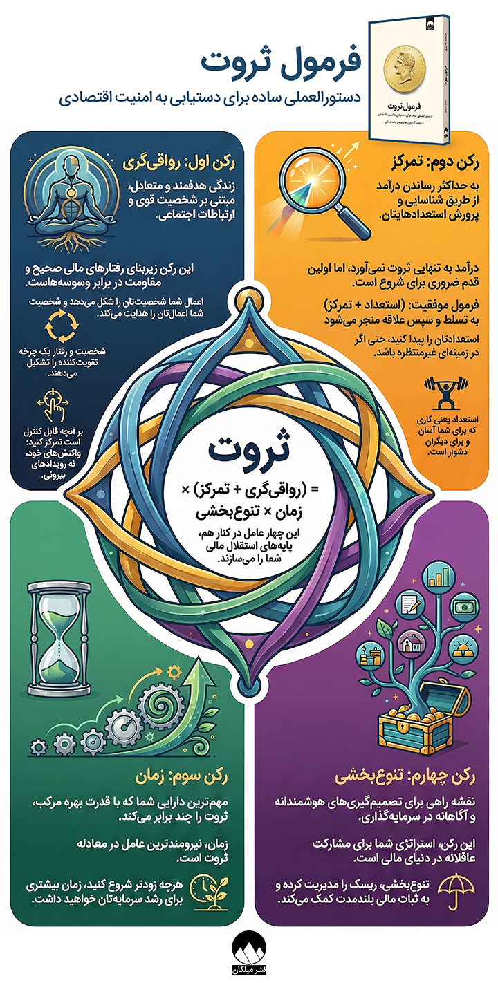 «فرمول ثروت یکی از معدود کتابهایی است که بهجای انگیزهی زودگذر، چارچوب ذهنی بلندمدت میسازد.»