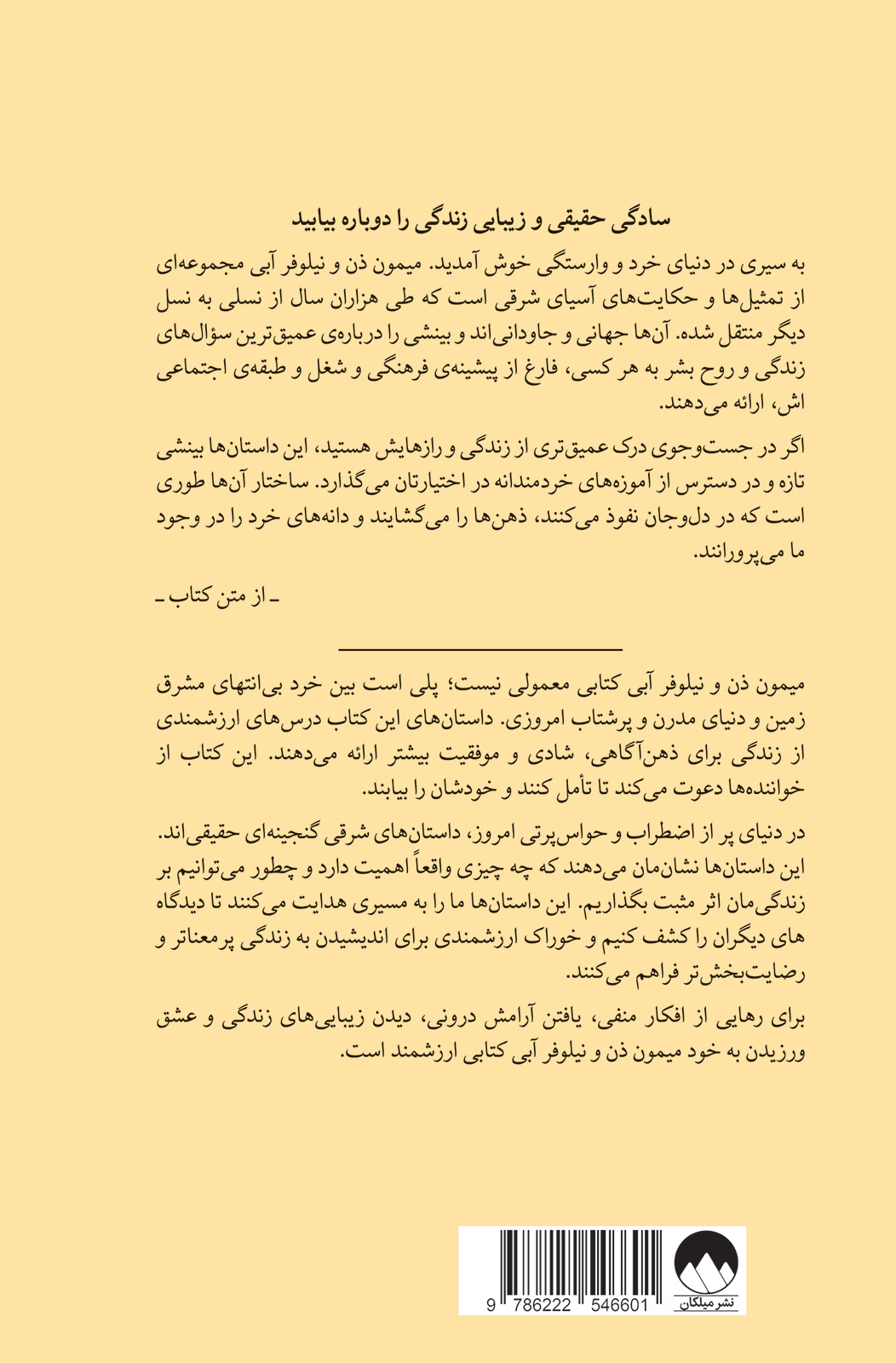 به سیری در دنیای خـرد و وارستگی خوش آمدید. میمون ذن و نیلوفر آبی مجموعه‌ای از تمثیل‌هـا و حکایت‌هـای آسیای شرقی است کـه طی هـزاران سال از نسلی به نسل دیگر منتقل شده. آن‌ها جهانی و جاودانی‌اند و بینشی را درباره‌ی عمیق‌ترین سؤال‌های زندگی و روح بشر به هر کسی، فارغ از پیشینه‌ی فرهنگی و شغل و طبقه‌ی اجتماعی‌اش، ارائه می‌دهند.